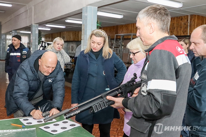 Инструкторы-методисты по физкультурно-оздоровите­льной и спортивно-массовой работе, спортсмены «Белшины» благодарят профсоюзный комитет предприятия за приобретение новой пневматической винтовки.