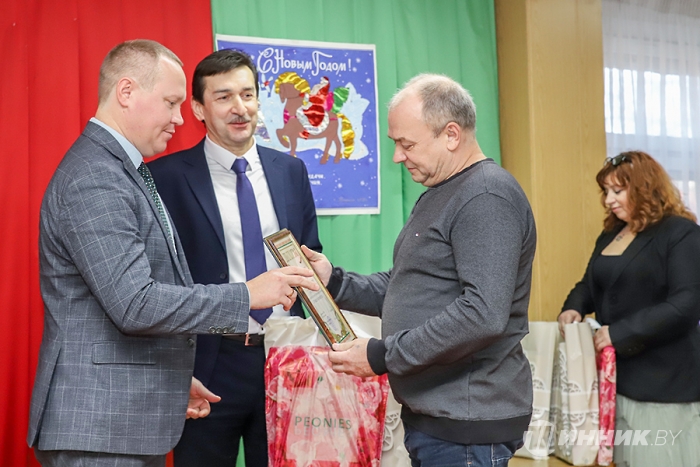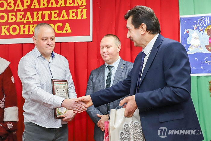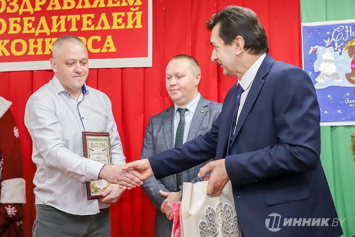После теплых слов в адрес заводчан настал волнительный момент – церемония чествования номинантов. Также для участников торжества организаторы мероприятия подготовили творческие подарки: с музыкальными композициями выступили Игорь Шатило (он же Дедушка Мороз) и Ольга Русецкая. Праздничную атмосферу им помогали создавать Алла Попкова и Юрий Гомель.