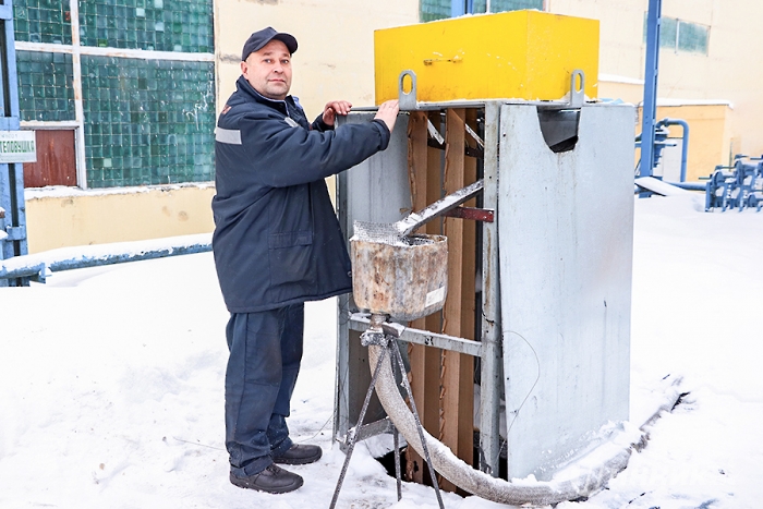 Рядом со скиммером – слесарь-ремонтник Александр Голубев, который его обслуживает